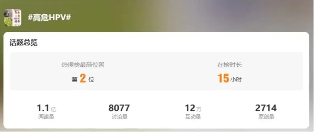 2、“高危HPV”再上熱搜,1.1億人參與話(huà)題