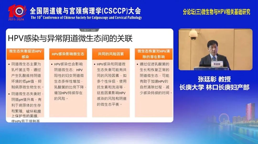 長庚大學(xué)醫(yī)學(xué)院張廷彰教授分享了《陰道微生態(tài)與HPV持續(xù)感染的相關(guān)性》