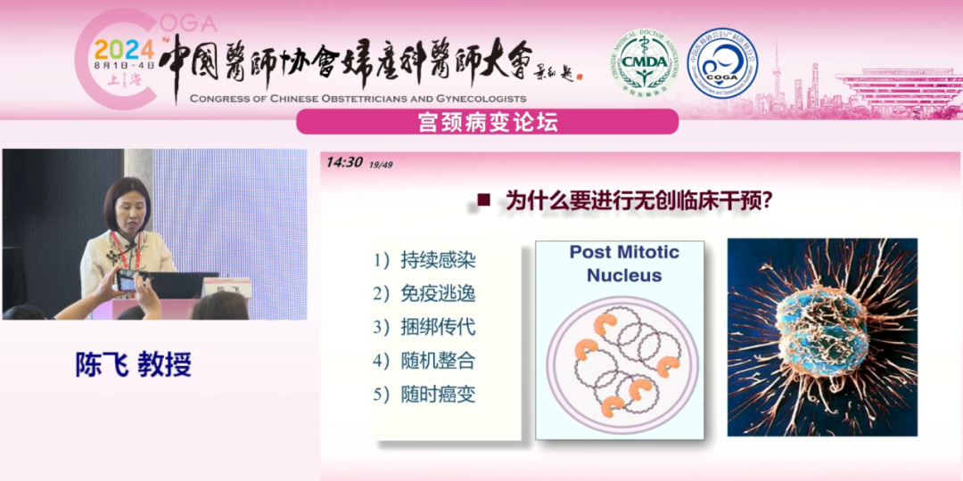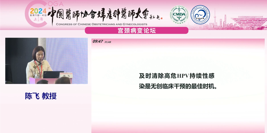 北京協(xié)和醫(yī)院陳飛教授就《清除高危HPV無創(chuàng)臨床干預(yù)》為題進(jìn)行報(bào)告: