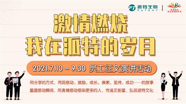 “激情燃燒-我在派特的歲月”員工征文演講活動,經過征文評選、演講初賽評選等環(huán)節(jié)的層層選拔,現(xiàn)已在全國范圍內評選出15位選手進入演講總決賽。