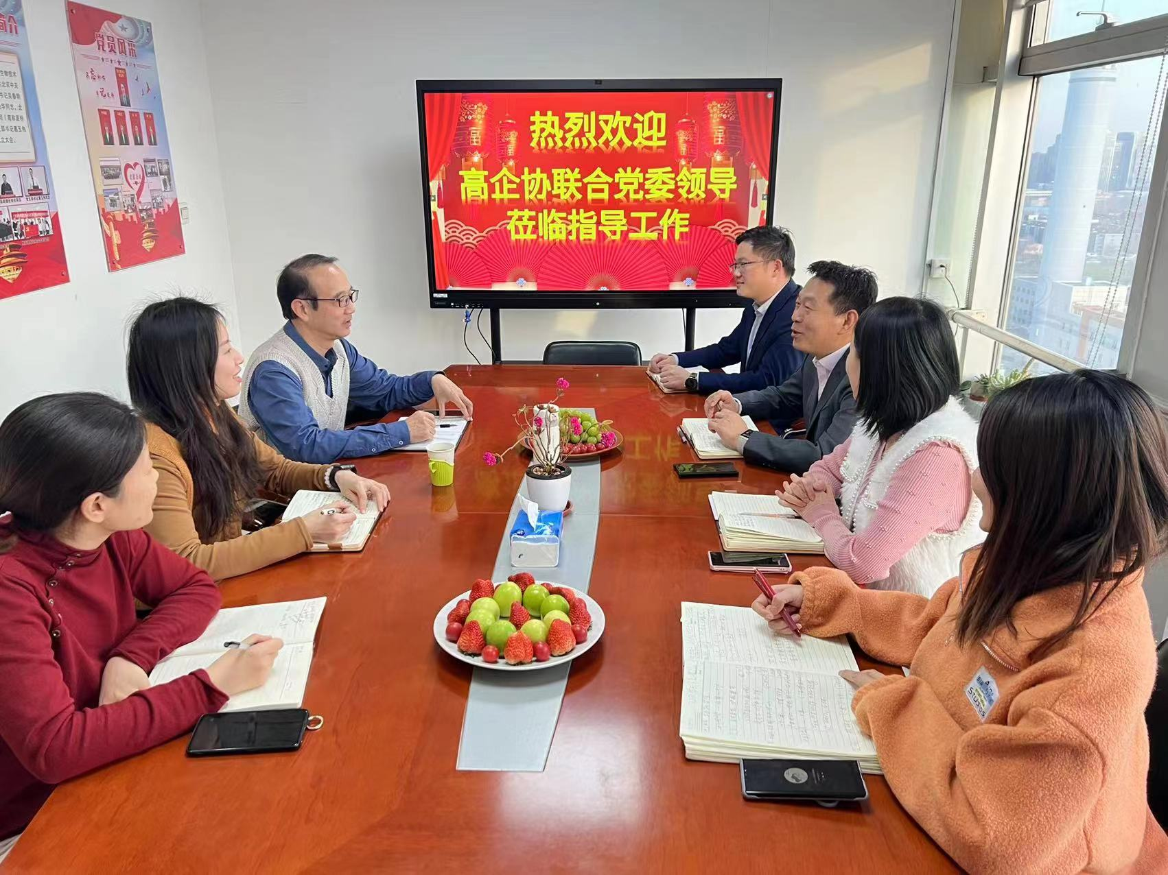 配圖:高企協(xié)聯(lián)合黨委領(lǐng)導(dǎo)臨派特生物,雙方進(jìn)行座談交流